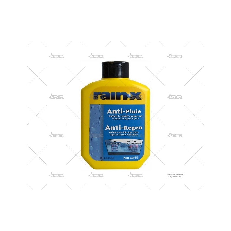 Líquido anti-lluvia marca Rain-x, es un producto muy potente cuya función es repeler las gotas de lluvia, aplicar en la parte exterior del cristal bien limpio y seco. Imprescindible, excelente rendimiento en situaciones de lluvia. Envase reducido, ideal para añadir a la bolsa de copiloto Cantidad 200ml.