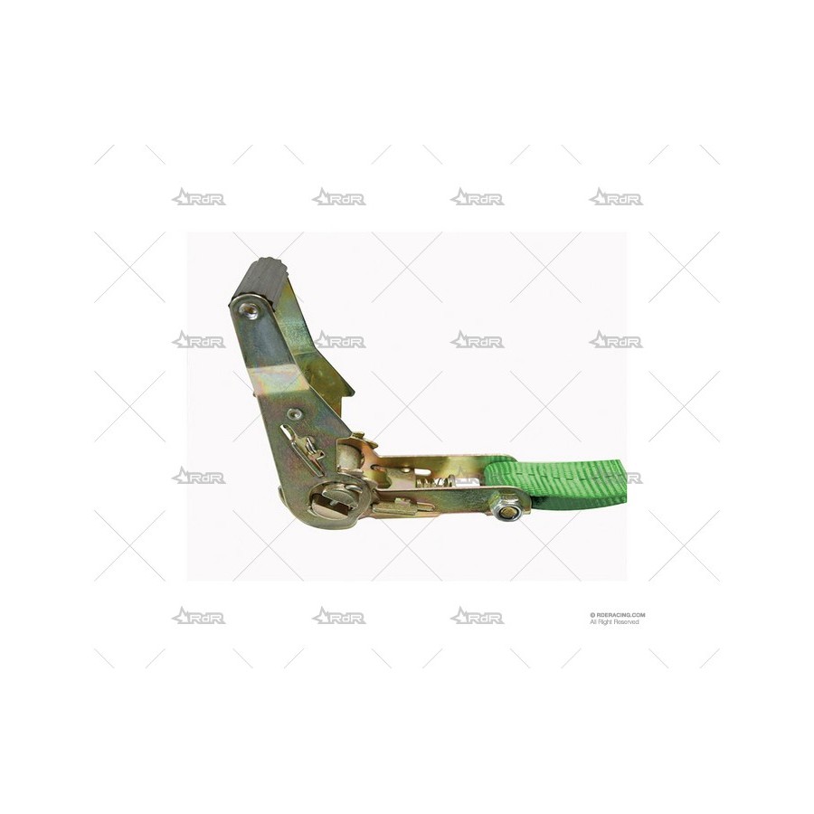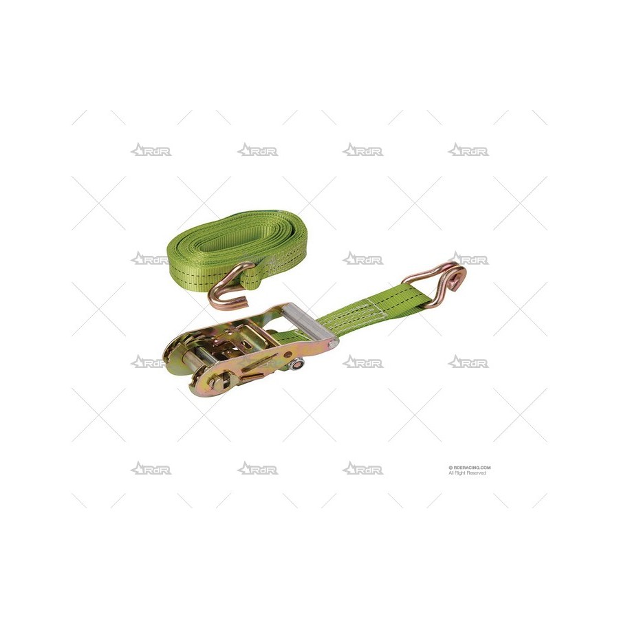 Cincha de fijación con trinquete tensor gancho en J de la marca RRS. resiste una fuerza de 1T.