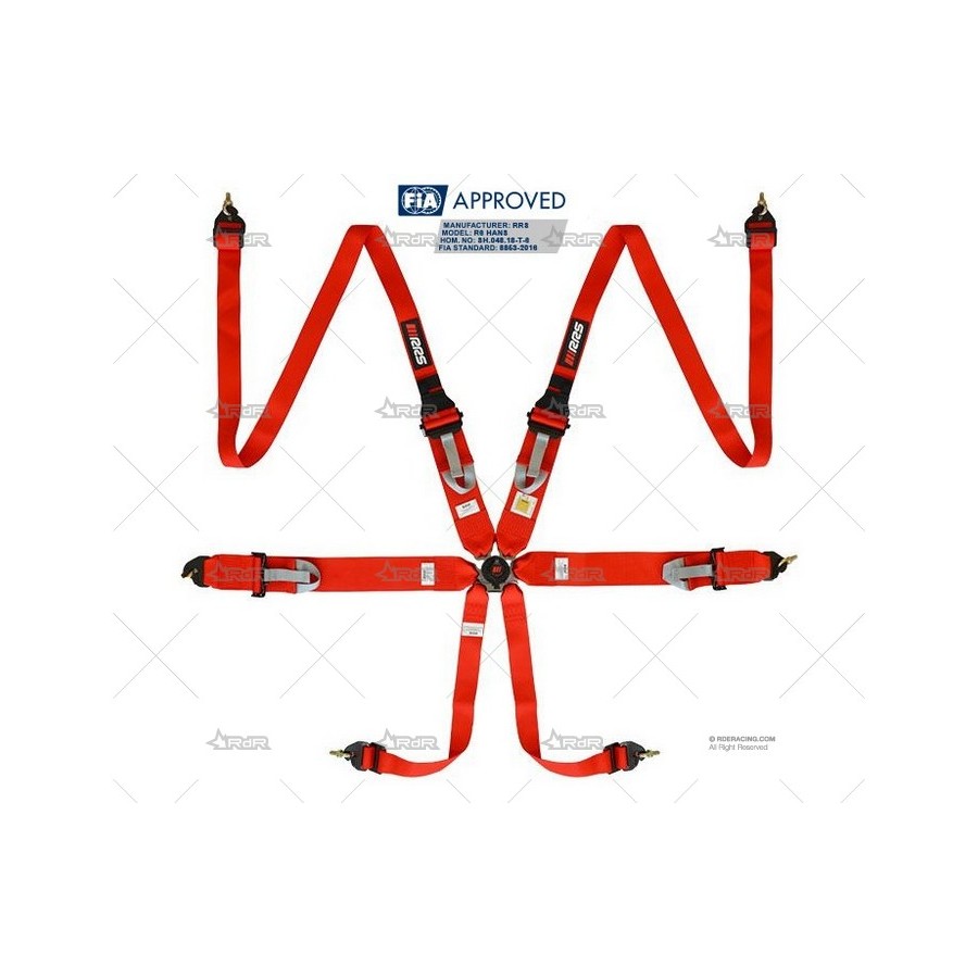 Arnés RRS de 6 puntos y 2/3" de ancho en hombros y 3" de ancho en cintura con homologación FIA 8853-2016 con tensores en acero, ideal para turismo.