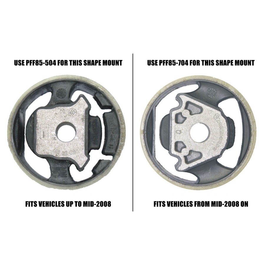 Adecuado Para los modelos de alta potencia y track, utilizando un material más flexible que ayuda a reducir el movimiento de los Silentblock transmitiendo menor ruido y vibraciones Para el montaje del inserto PFF85-504 insert. Reemplaza a las piezas o iginales con num. de serie 1K0199867 o 1K0199868 PFF85-504P Para montar en vehículos hasta el primer semestre del 2008, por favor comprueba el dibujo Para identificar el Silentblocks que necesitas. Para vehículos de la segunda mitad del 2008 usar la referencia PFF85-704P.
