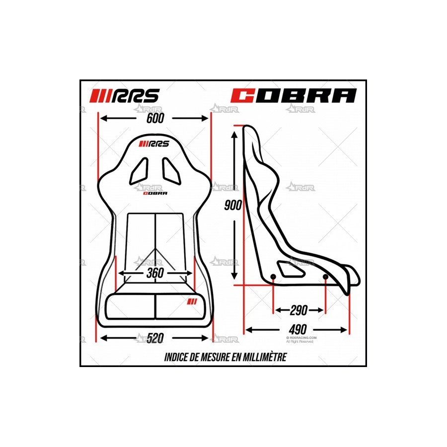 Baquet de competición RRS sin orejas, fabricado en fibra de vidrio.