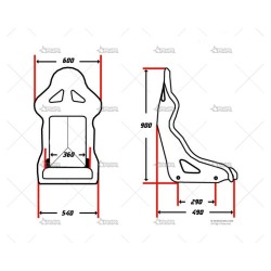 CARACTERÍSTICAS :- Norma FIA 8855-1999- Dimensiones: Ver fotos- Muy buen acabado y rigidez garantizada.- 5 pasajes de arnés- Fijaciones laterales (no suministradas)- Parte posterior de fibra encerada negra- Cojines extraíbles con Velcro®: respaldo, asiento, piernas- Se suministran 4 tornillos BTR- Peso del cubo verificado: 10,3 kg- Color posible: Negro- Diseñado para personas de más de 1,80m de altura y más de 75kg- Distancia entre centros de lado a lado: 420 mm