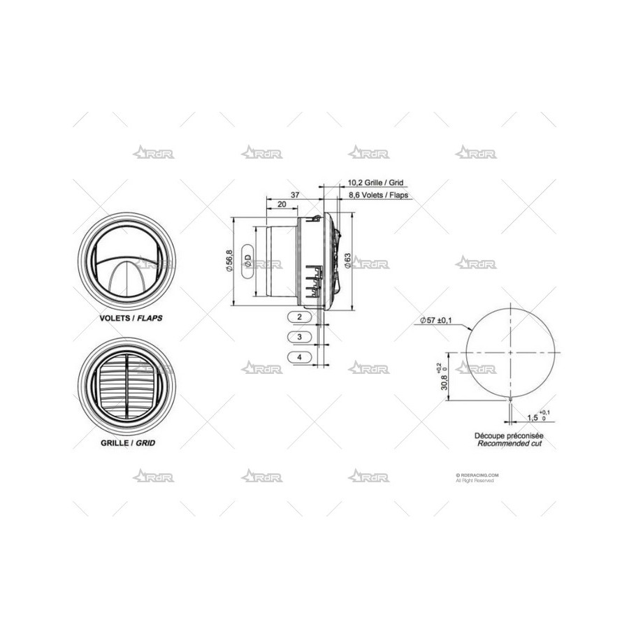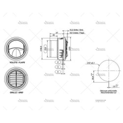 Difusor de aire regulable con 2 lamas y parte metálica fija.