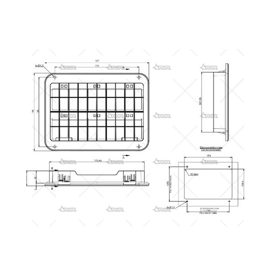 Se puede atornillar (agujero de Ø4mm) o enganchar (en un soporte de 2 a 4mm) con o sin junta