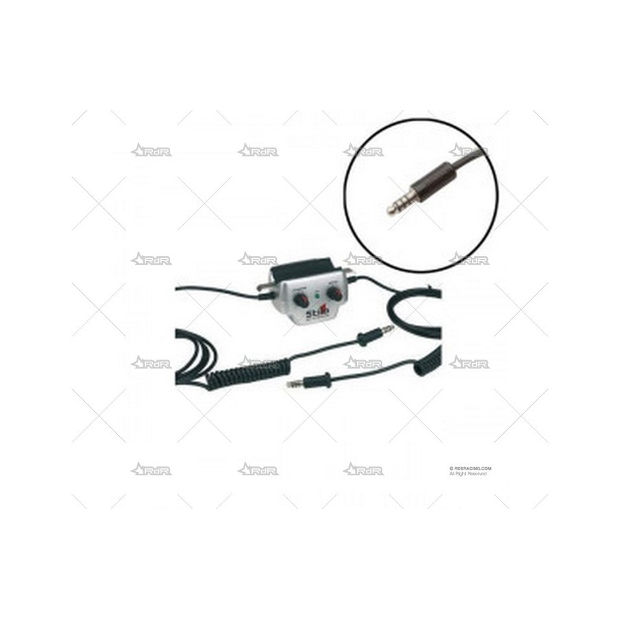 Centralita Stilo WRC 03 con soporte de fijación en el arco. Tiene un LED indicador de funcionamiento con encendido automatico al conectarse los interfonos. Ajuste individual de volumen, tiene salida de audio para la cámara (cable no incluido, ref. STI-YB0312). Filtro antiruido analógico.
