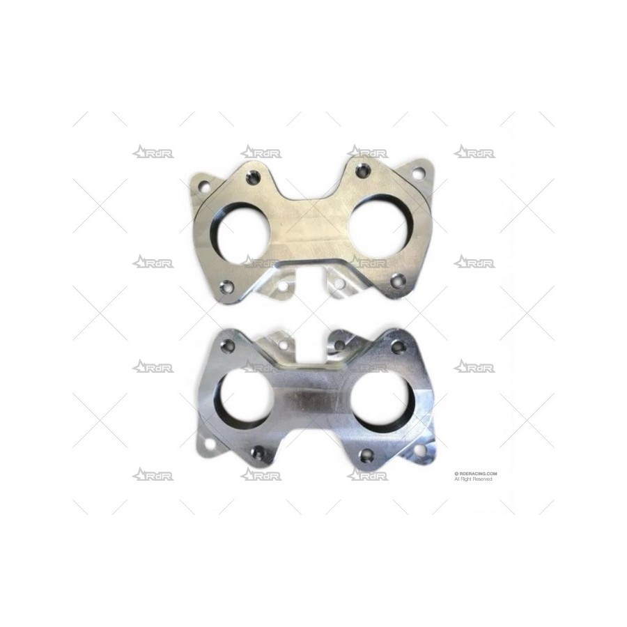 Kit 2 bridas aluminio específicas para intercalar entre los carburadores y el colector de admisión y para sustituir las bridas de goma originales del Peugeot 205 Rallye, mantiene las mismas medidas que las originales.
