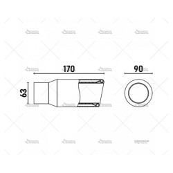 Diámetro de salida interior 80 mm, exterior 90 mm.