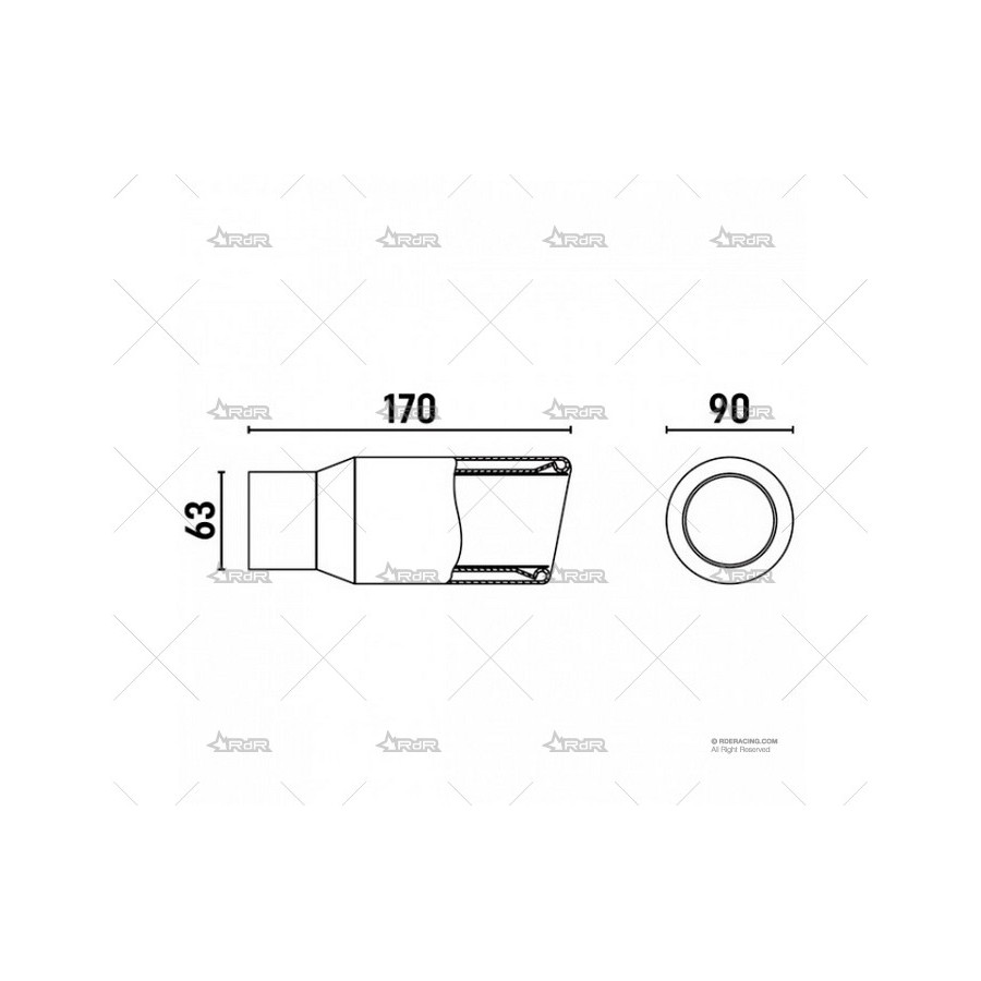 Diámetro de entrada interior 63 mm, exterior 65 mm.
