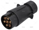 Enchufe de remolque y base en plástico de 7 polos. Conector compacto y resistente para remolques ligeros de competición. Su diseño en plástico ofrece durabilidad y protección contra los elementos. Ideal para aplicaciones donde se requiere una conexión eléctrica fiable con un menor número de circuitos.