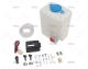 Kit lava faros de agua de limpiaparabrisas universal, el bote es de 1.5L de plástico ABS blanco con su soporte, el motor es de 12v, incluye tubo, pulverizadores, botón pulsador, kit de preinstalación electrica, T de conexión, etc.