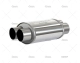 Silenciador de escape intermedio POWERSPRINT fabricado en acero inoxidable con cuerpo ovalado, estructura de salida/entrada doble.