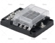 Caja con portafusibles de 6 circuitos y conexión a tierra (GND) de 100A y 32V. Organiza y protege hasta seis circuitos eléctricos del vehículo. Facilita la gestión de fusibles y asegura una distribución ordenada de la energía, mejorando la seguridad y la eficiencia del sistema eléctrico de competición.