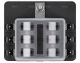 Caja portafusibles de cuchilla estándar, acepta fusibles ATO y ATC de 1A a 30A. Incluye LEDs rojos que se iluminan al fundirse un fusible para un diagnóstico rápido. Las salidas son terminales Faston de 6,3mm o tornillos M4. Incluye cubierta protectora transparente.