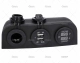 Compuesto de una toma de mechero con tapa de protección para alimentar cualquier dispositivo externo, otra con voltímetro y amperímetro para controlar la carga y el rendimiento de la instalación de baterías, así como una toma de conector USB doble (una de ellas válida para iPhone/iPad).