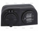 Compuesto de una toma de mechero con tapa de protección, para alimentar cualquier dispositivo externo y otra con voltímetro y amperímetro, útil para controlar la carga y el rendimiento de la instalación de baterías del barco.