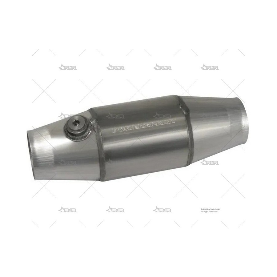 Catalizador universal de alto flujo para competición y automovilismo, con monolito metálico de 100 cpsi y homologación FIA. Conexiones de tubería cónicas y conexión para sensor lambda. Apto para motores de gasolina de hasta 4.0 litros. Rango de temperatura de funcionamiento hasta 1600 °C. Conexiones de tubería soldadas con MIG y monolito soldado para máxima resistencia mecánica.