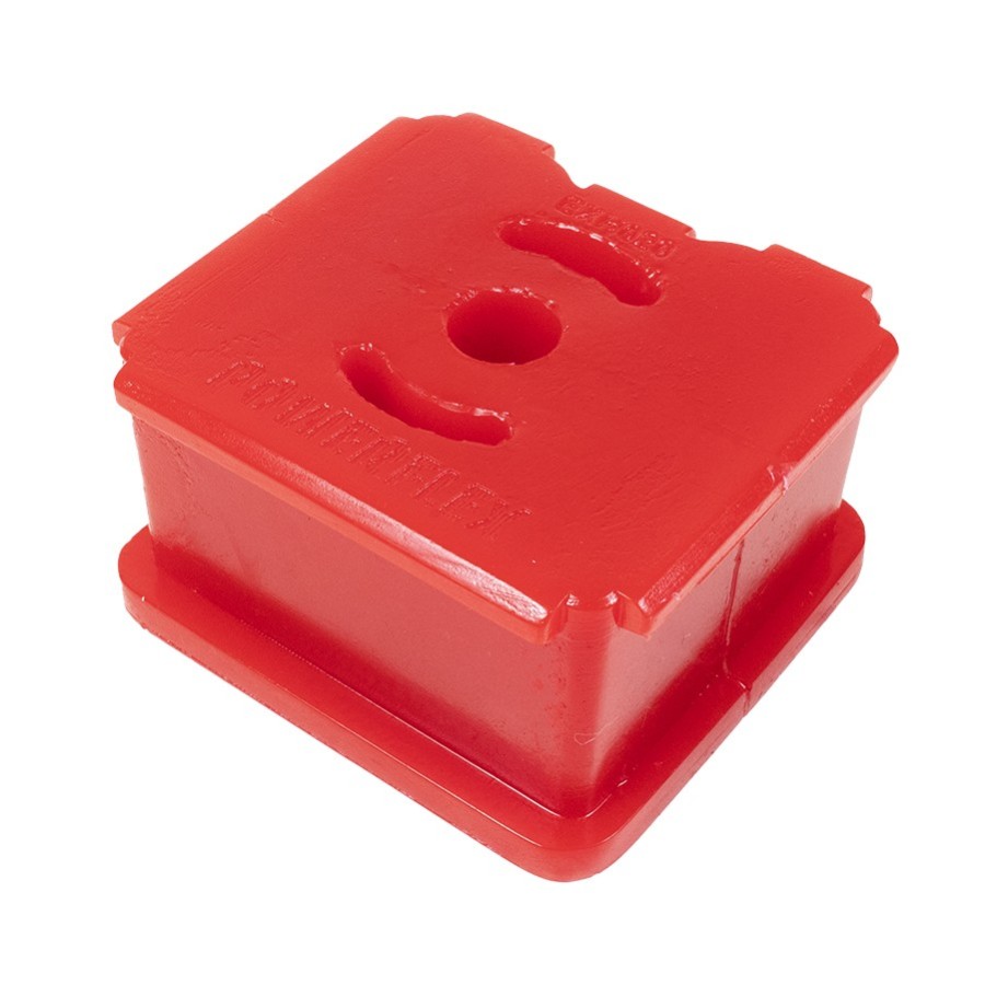 Silentblock para soporte de escape Powerflex ultra resistente fabricado a partir de poliuretano con un acabado en rojo brillante.
