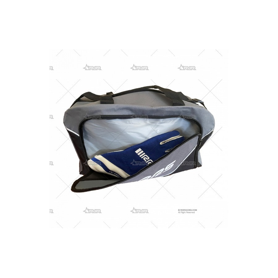 La bolsa de transporte RRS, extraligera y resistente. Ideal para guardar y transportar tu casco, Hans®, traje de neopreno, botas o ropa interior.Gran bolsillo lateral para guardar, por ejemplo, los guantes o el libro de registro del copiloto.Protege tu equipo con la bolsa de transporte RRSDimensiones (en cm): 50x30x22100% poliéster