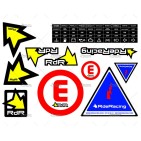 - Hoja de adhesivos varios RdeRacing con indicadores de extinción y desconectador de batería según homologación FIA.