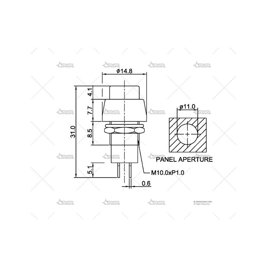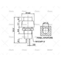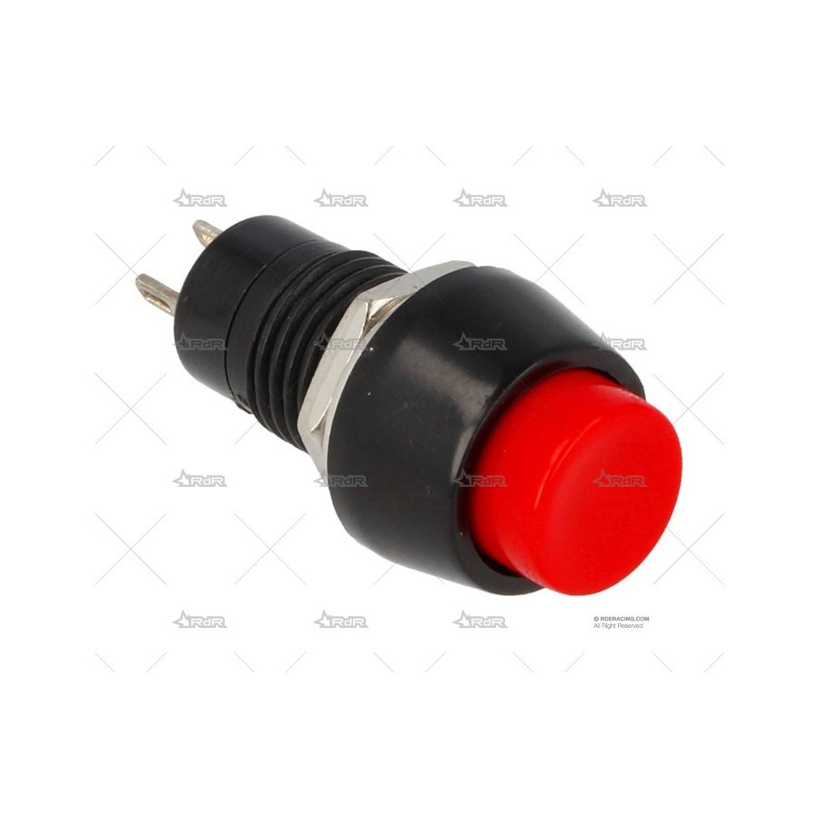 Interruptor pulsador on / off QSP pequeño rojo / negro de 12 voltios y 1 amperio. Diámetro exterior 14.9 mm y 10 mm agujero de encaje.