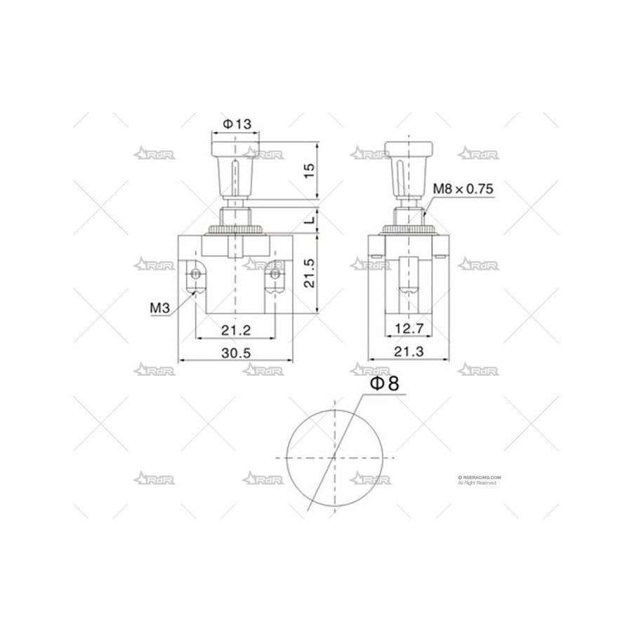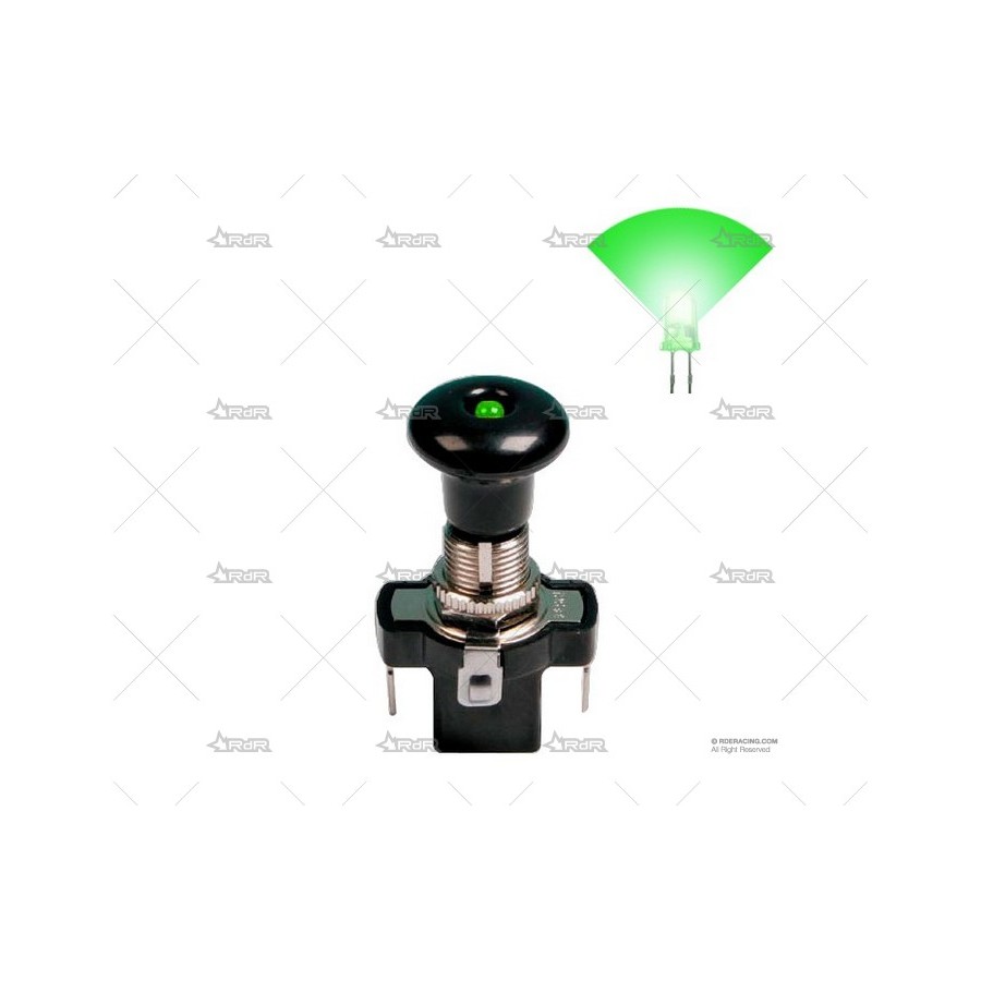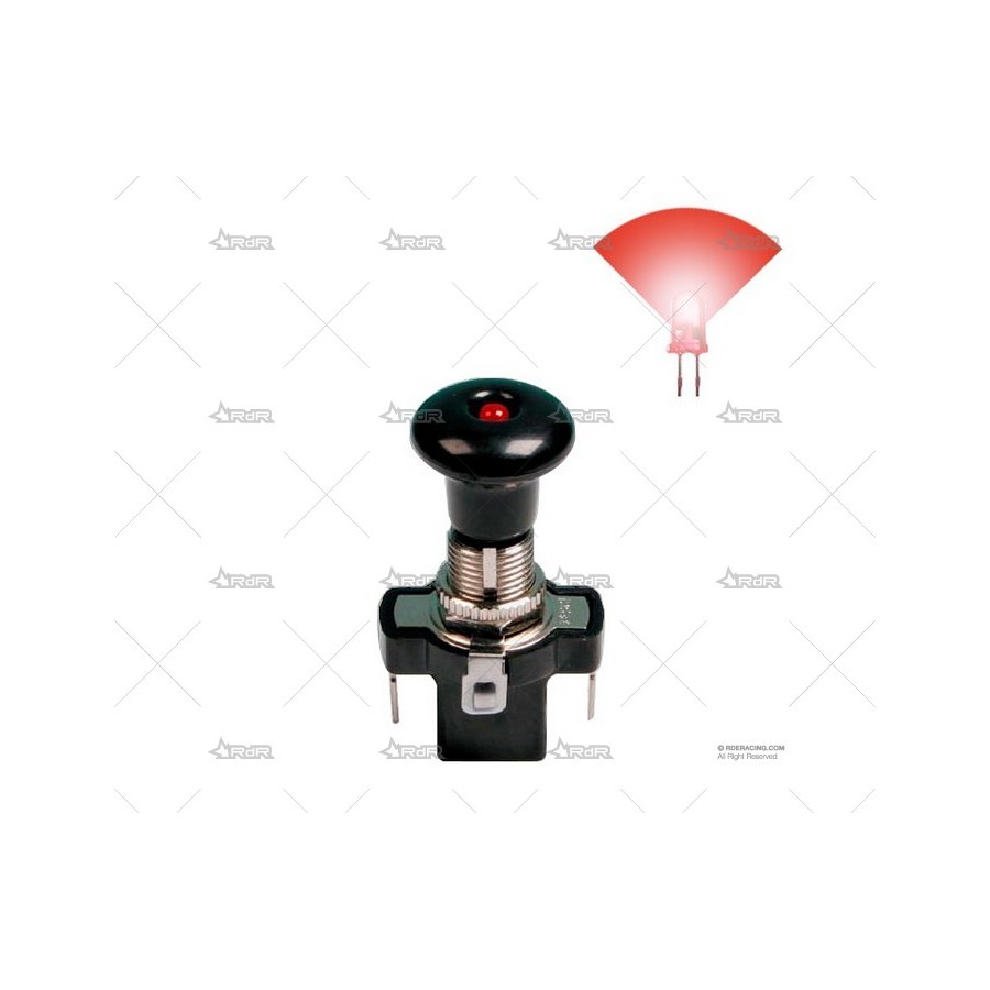 Interruptor tirador con iluminación por LED al extremo. Fabricado en cuerpo metalico. Amperaje máximo 20Amp. Disponible en 3 colores (rojo/azul/verde) Diámetro de perforación 12mm.