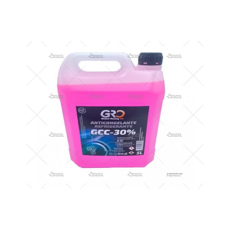 GLOBAL RACING OIL GCC 30% LONG TIME es un líquido refrigerante 100% orgánico, anticongelante, todo tiempo, especialmente formulado para ser empleado en cualquier tipo de circuito de refrigeración, tanto sellados (C.C) como abiertos. La misión fundamental es refrigerar el motor y descender el punto de congelación del agua. GCC-30% LONG TIME tiene una estudiada composición, completamente orgánica en la que intervienen aditivos especiales que tienen como misión, entre otras, la de evitar la formación de depósitos y barros, tanto empleando aguas duras como blandas.