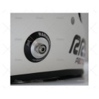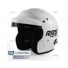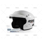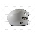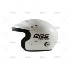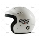 Casco RRS PROTECT JET color blanco brillante, diseñado para la competición bajo normativa FIA 8859-2015. Fabricado con estructura de fibra de vidrio y dotado de coquillas anti-ruido como en los cascos de gama media-alta.
