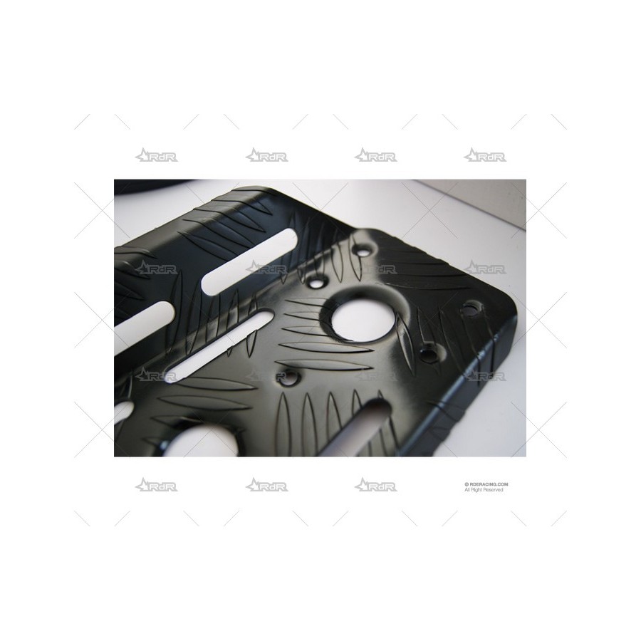 Reposapiés de piloto de aluminio con retorno, el mejor del mercado. Tu pie izquierdo queda perfectamente apoyado y se acomoda de forma natural sin titubeos. ¡Una preocupación menos durante un ataque fuerte!- 300 x 120 milímetros- Entregado completo- "Granos de arroz" antideslizantes- Peso: 340 grEl reposapiés permite al piloto sujetarse bien durante frenadas fuertes para evitar bloquear las ruedas.