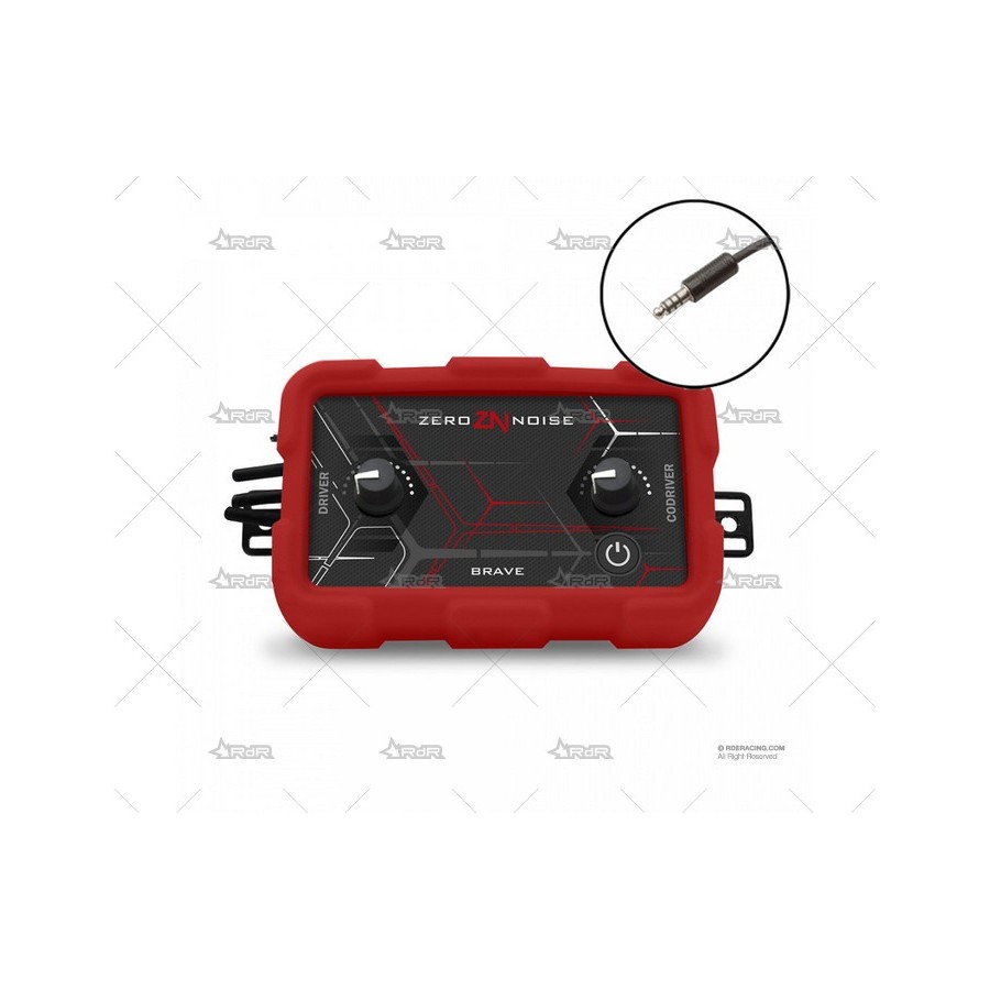 Centralita ZERO NOISE modelo BRAVE, gran relación calidad/precio. Control del volumen por separado entre piloto y copiloto. Su amplificación ofrece un sonido limpio y potente gracias al filtro analógico y que al mismo tiempo prolonga la vida de la batería interna de 9 voltios. También cuenta con un cable de alimentación de 12 voltios para conectarla a la batería del automóvil y una toma RCA para cámara de automóvil. Soporte específico para su montaje en el arco o jaula anti-vuelco con almohadillas. Recubierta con funda de silicona.