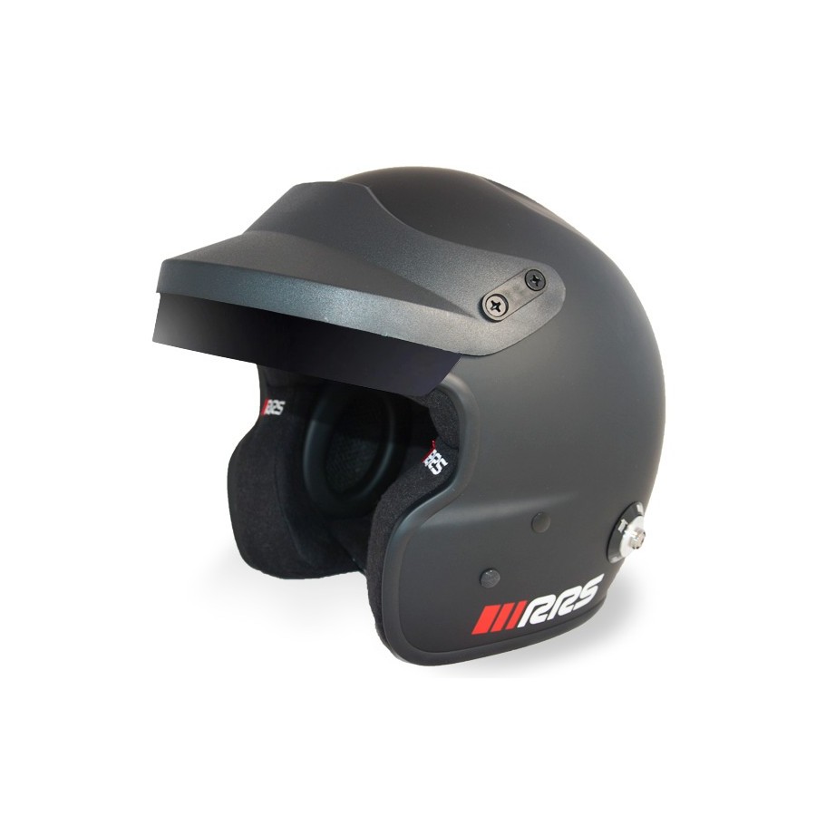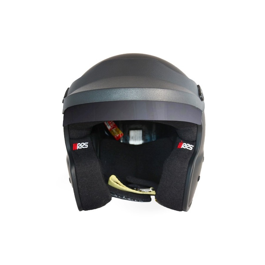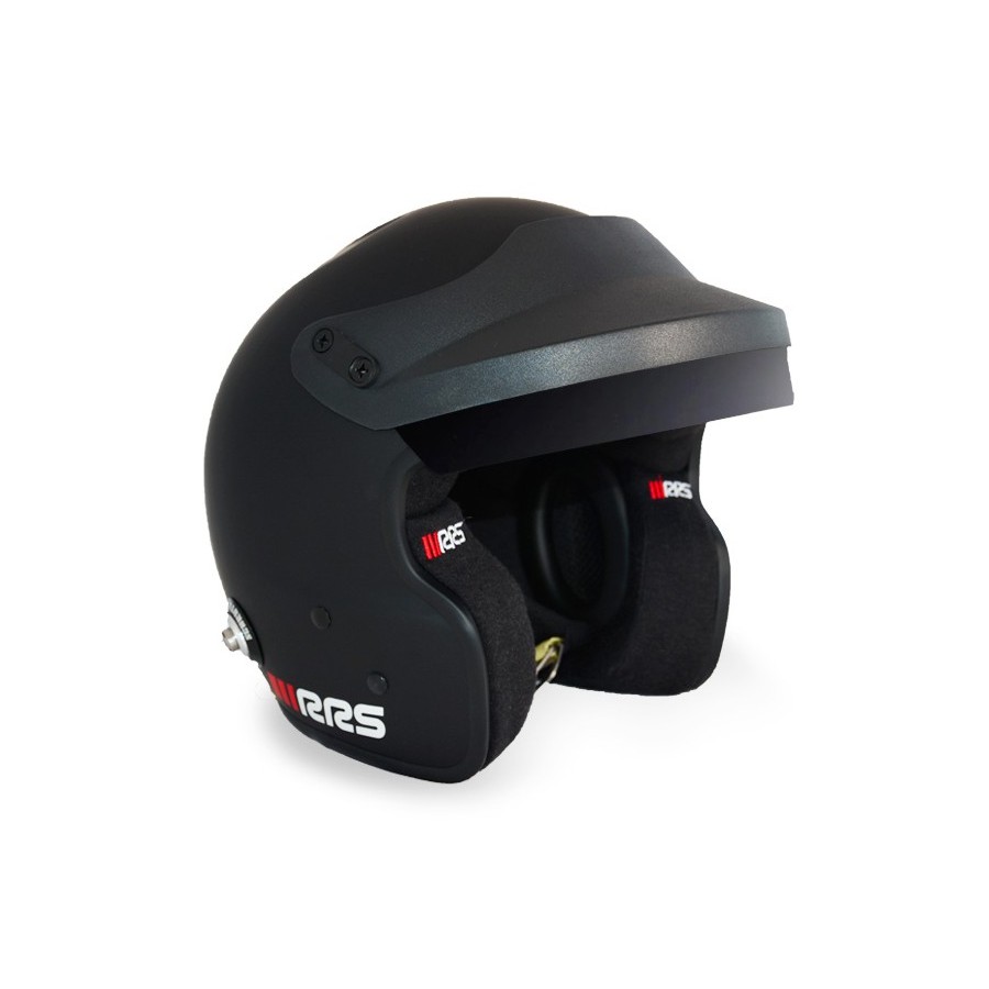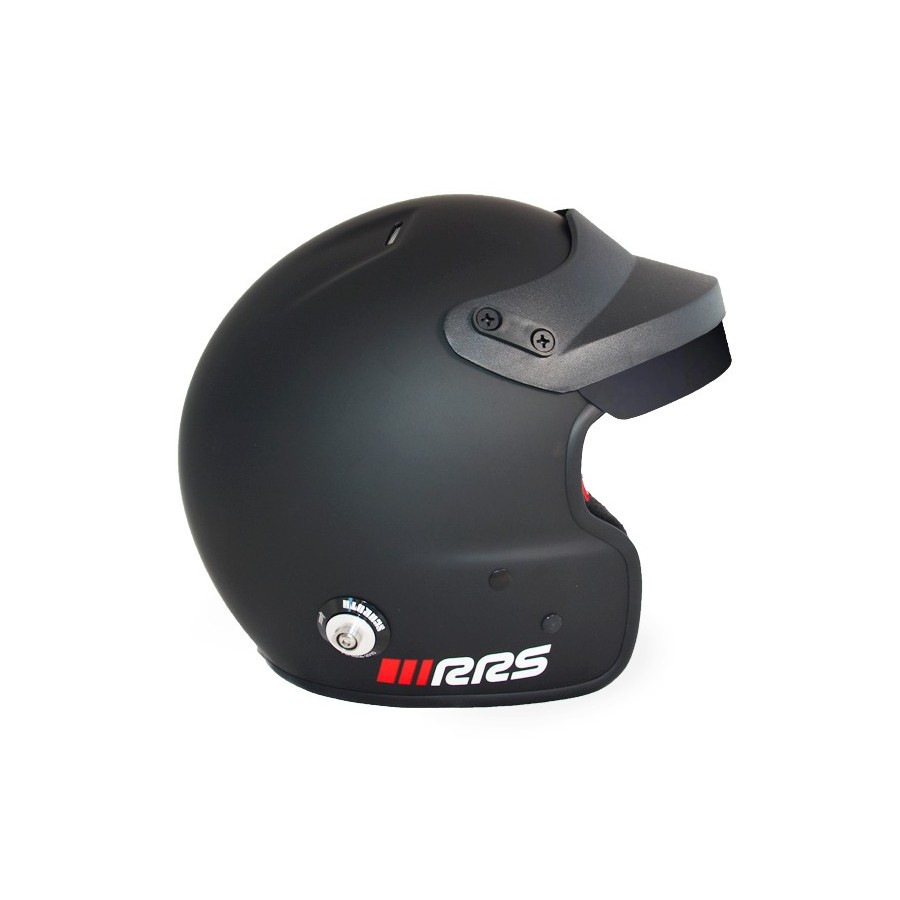 Casco RRS PROTECT JET de color NEGRO acabado MATE, diseñado para la competición bajo normativa FIA 8859-2015.
