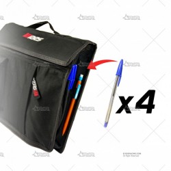 Esta bolsa RRS de copiloto se compone de cinco compartimentos, uno de ellos con cremallera y dos con cremallera, uno de ellos en la parte delantera para tener un acceso rápido y fácil a sus documentos. Esta bolsa también está equipada con un asa, así como dos compartimentos para bolígrafos ubicados a ambos lados, a los que se puede acceder sin abrir el bolso.El pequeño bolsillo frontal está diseñado para el manómetro o el teléfono móvil.