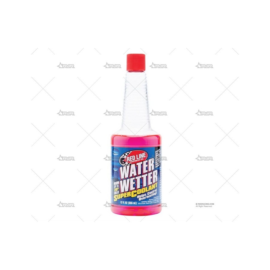 Aditivo para enfriamiento del motor Red Line Water Wetter. Puede bajar la temperatura del motor hasta 15ºC, se mezcla con el anticongelante, este tratamiento sirve para mezclar en cantidades hasta 15L de anticongelante. Cantidad 355ml.