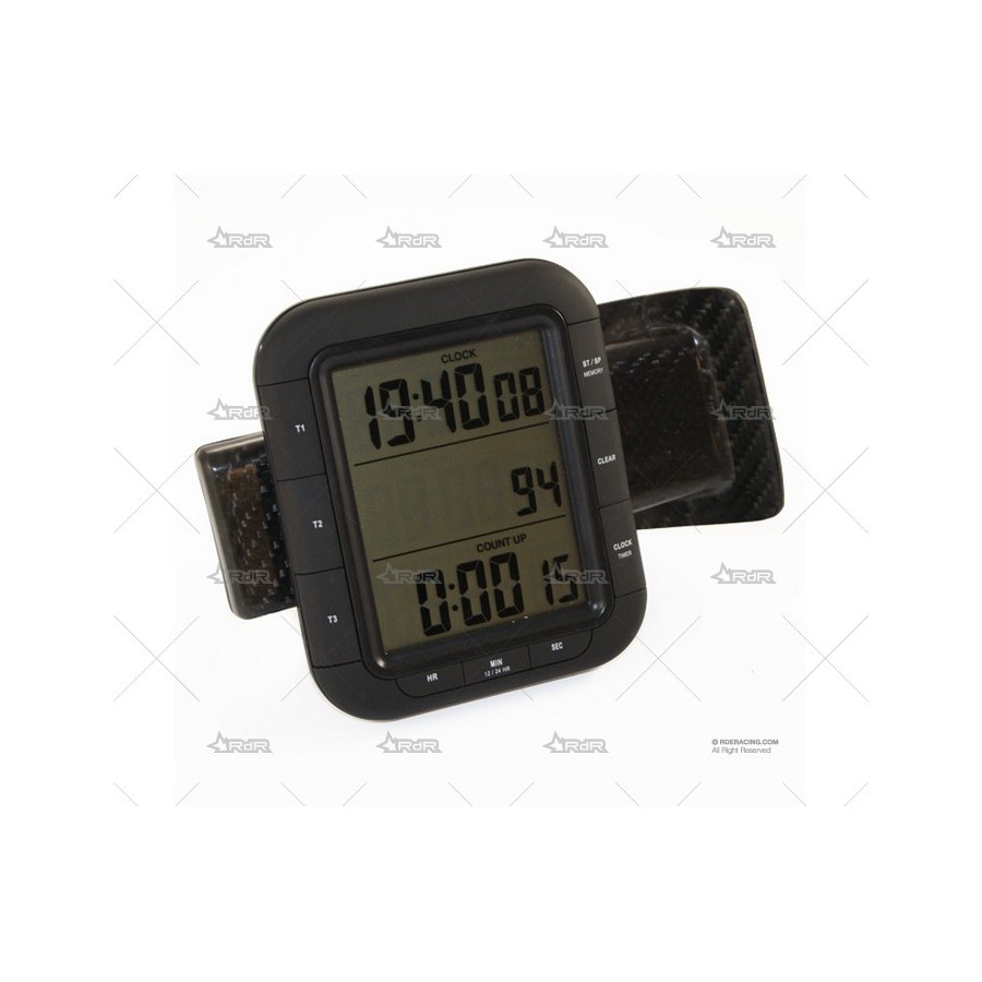 Soporte para cronógrafo de fibra de carbono. Muy ligero, proporciona una excelente visibilidad para su cronógrafo. Se fija al panel de la puerta a una distancia ideal para tenerlo a mano.