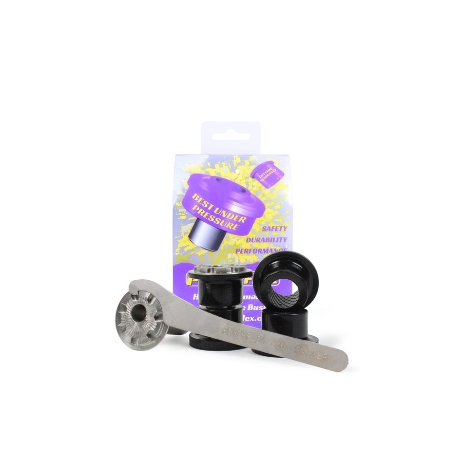 Cuenta con un mecanizado CNC de acero inoxidable que permite ajustar en +/- 0,5 grados el ángulo de caída -camber-. Si usted no quiere realizar ajustes por favor solicite la referencia PFF85-201. La forma de los extremos evitan que la rotación dificulte la geometría de la suspensión. El PFF85-201G aumenta la rigidez sobre la pieza original en un 15%.