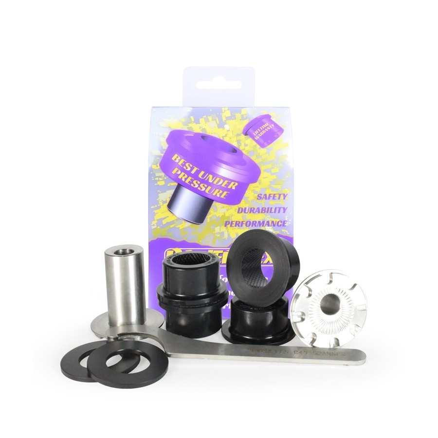 Cuenta con un mecanizado CNC de acero inoxidable que permite ajustar en +/- 0,5 grados el ángulo de caída -camber-. Está diseñado Para complementar PFF85-502G que encaja en la posición trasera del mismo brazo Para proporcionar anti-elevación y ajustar la caída. Esta pieza sustituye a la pieza original número: 1K0407182