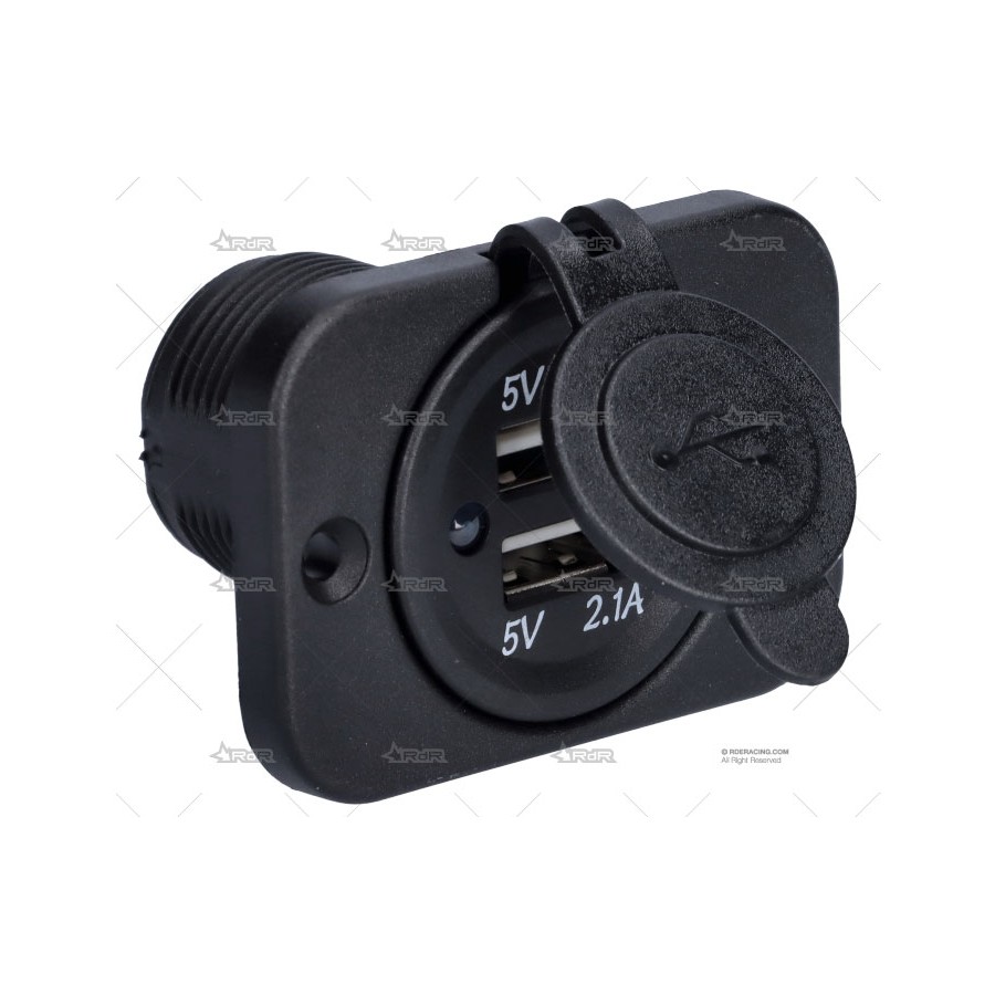 Tomas USB de 5V a 1 y 2,1A para iPhone/iPad.