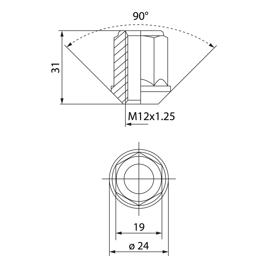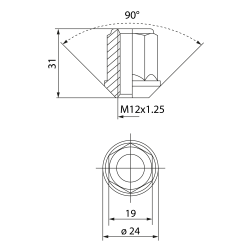 Tuerca de rueda en acero de la marca EVO CORSE, específica para llantas SPEEDLINE GR.A de Renault Clio Williams con cono de anclaje de 90º.