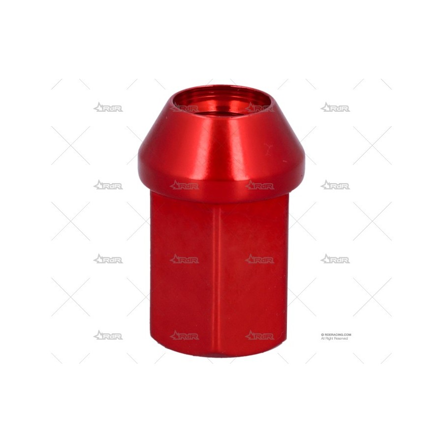 Tuerca de competición en ALUMINIO 7075 abierta, cabeza de 19mm y cono de 60º (standard). Color ROJO.