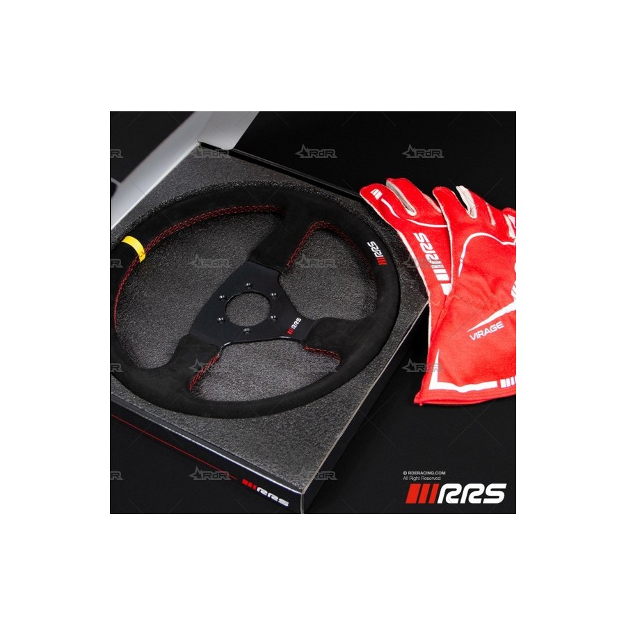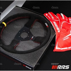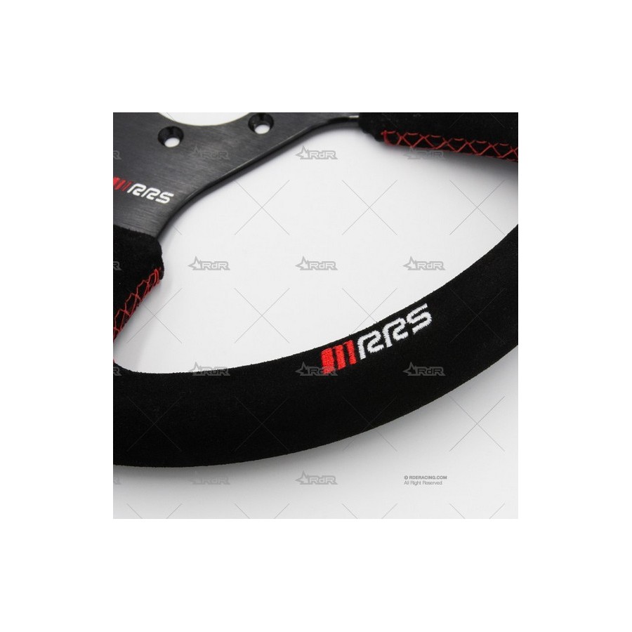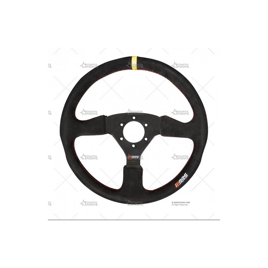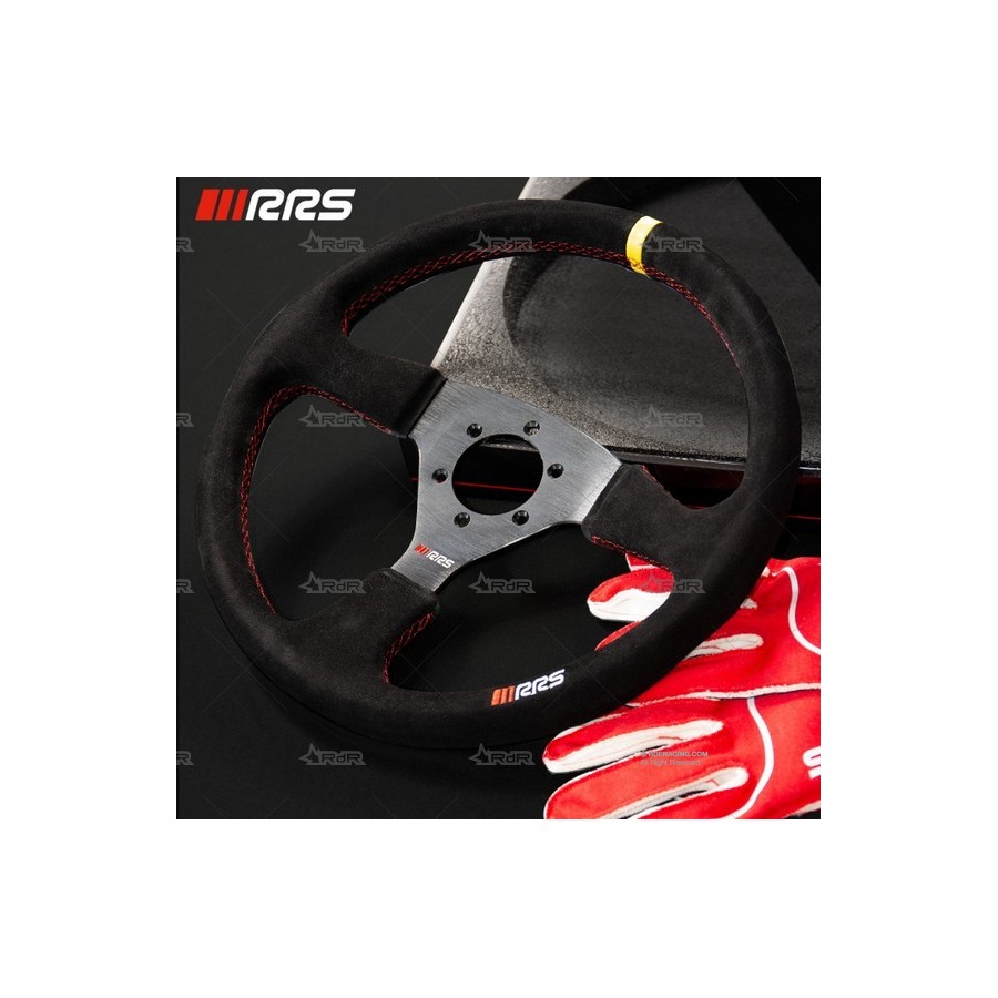 Volante RRS plano. Fabricado en aluminio anodizado, diámetro 350mm con tres brazos. Relación calidad/precio muy buena.