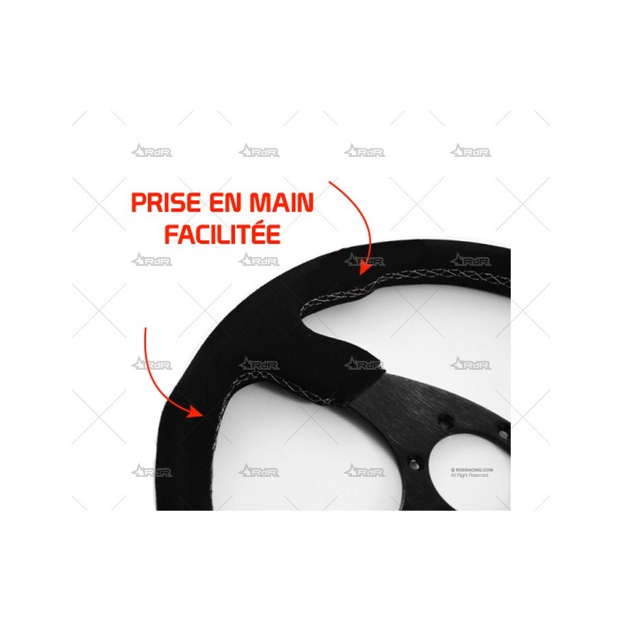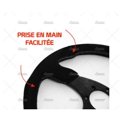Volante preformado de 3 radios de diámetro 330mm- Tulipaje: plano- Piel de oveja de color negro- Rama de aluminio negro- Costuras blancas- Marcador amarillo para ruedas rectas- Distancia entre centros estándar italiana: se adapta a todos los bujes de volante (Momo, Sparco, etc.)- Hebra ovalada: 38x29 mm- Perforación: 6x70mmSe entrega sin kit de bocina.