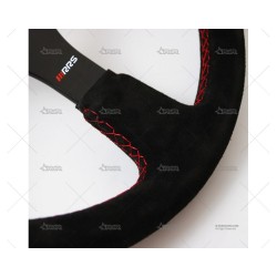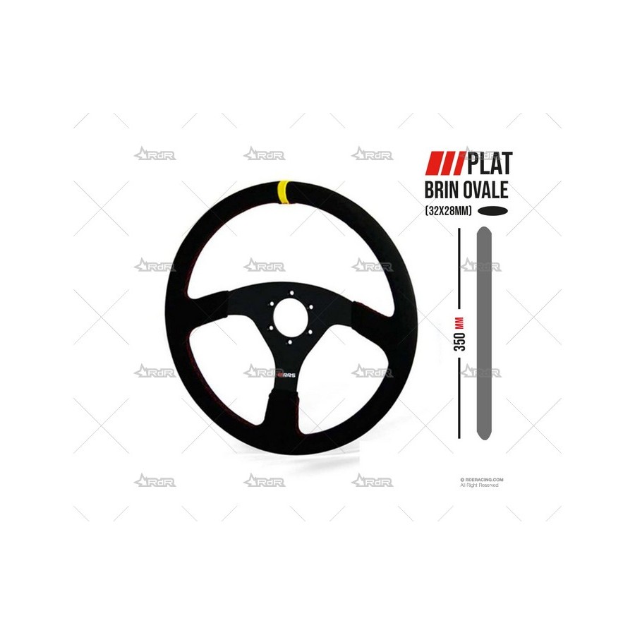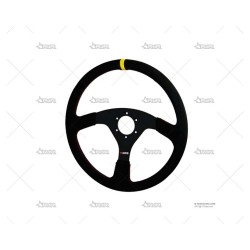 Volante de 3 radios, diámetro 350mm.- Tulipaje: plano- Piel de oveja de color negro- Rama de aluminio negro- Costuras rojas- Marcador amarillo para ruedas rectas- Distancia entre centros estándar italiana: se adapta a todos los bujes de volante (Momo, Sparco, etc.)- Hebra ovalada: 32x28 mm- Perforación: 6x70 mm