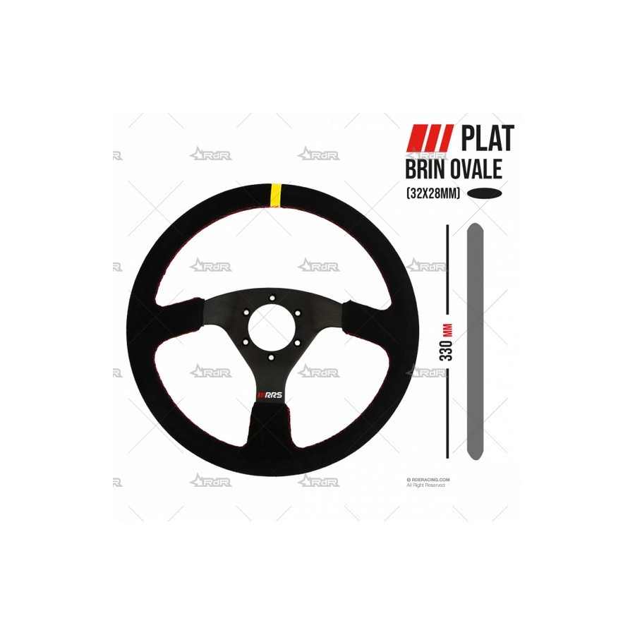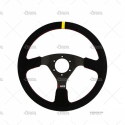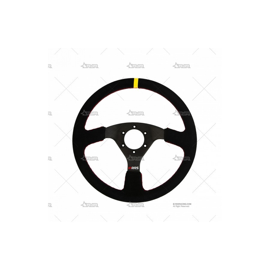 Volante plano de competición de diámetro pequeño.Diseño ideal para coches con las barras antivuelco cerca del volante.Diámetro: 330mm.Piel girada de color negro.3 brazos de aluminio en color negro.Costuras rojas.Hebrado de hilo ovalado.Referencia de ruedas rectas en color amarillo.Distancia entre ejes estándar italiana. Montaje en todo buje de volante (Momo, Sparco, ...).Centraje: 6x70mm.