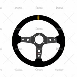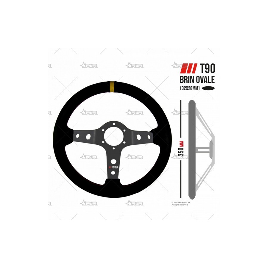 Tulipaje: 90 mmPiel de oveja de color negroRama de aluminio cepillado en color grisCosturas rojasMarcador amarillo para ruedas rectasDistancia entre centros estándar italiana: se adapta a todos los bujes de volante (Momo, Sparco, etc.)Hebra ovalada: 32 x 28 mmPerforación: 6x70mm Se entrega sin kit de bocina.Botón de bocina compatible: