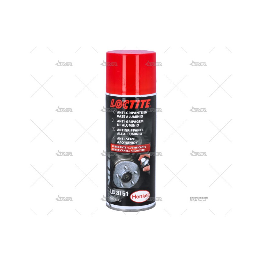 LOCTITE LB 8151 es un antigripante en base de aluminio, para aplicaciones exigentes diseñado para evitar el gripaje y la corrosión de los montajes sometidos a altas temperaturas, tales los de tornillos de tubos de escape, zapatas de freno y levas, tornillos y tuercas de ruedas y otros montajes estándar. Se utiliza habitualmente en aplicaciones con un intervalo térmico operativo de entre -30 °C a +900 ℃.